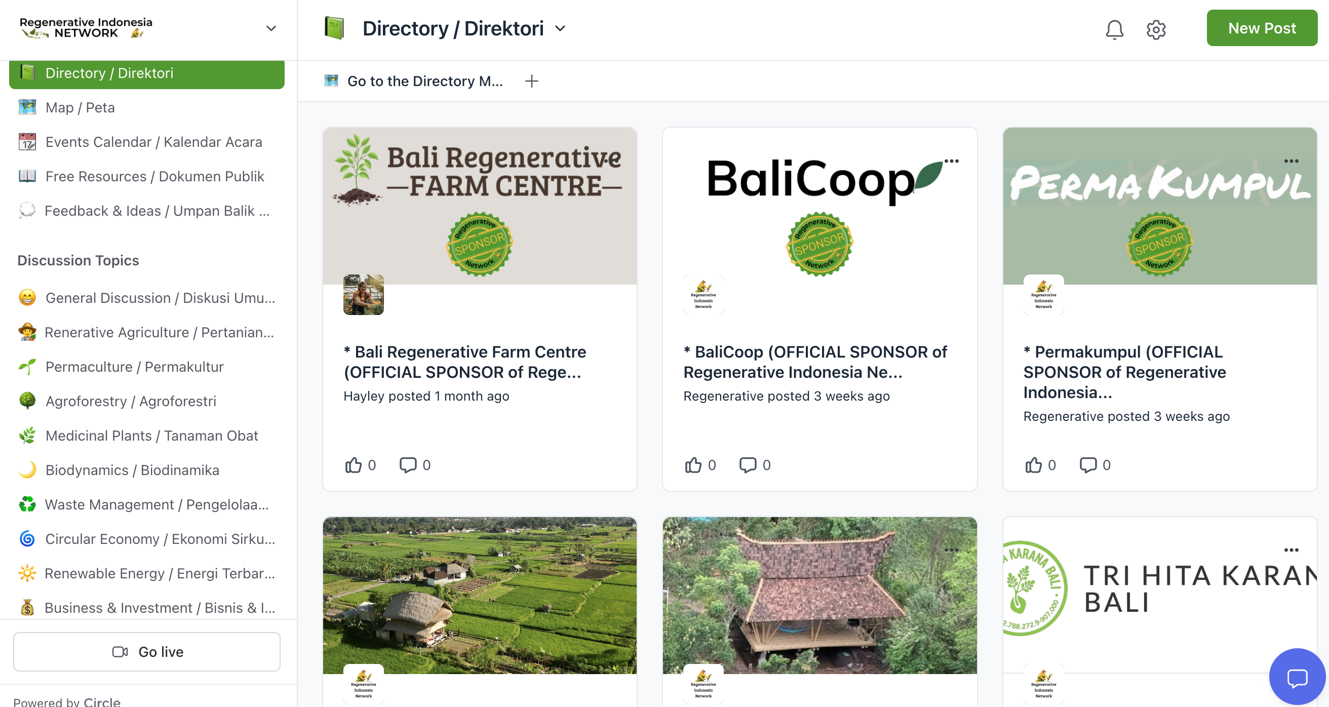 The Regenerative Indonesia Network is a one-stop-platform that houses a Directory of Regenerative Farms, Businesses and Organisations to highlight those striving towards a future that aligns with Nature. It also has a Map, a Calendar of Activities, Resources & Discussion threads to encourage networking, collaboration and more!